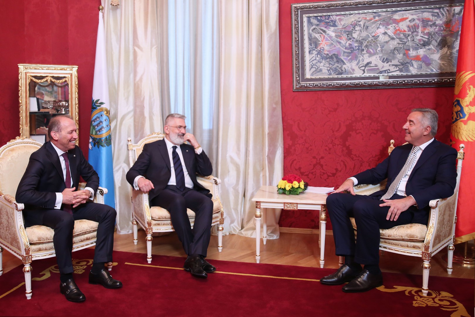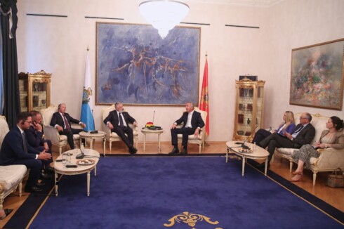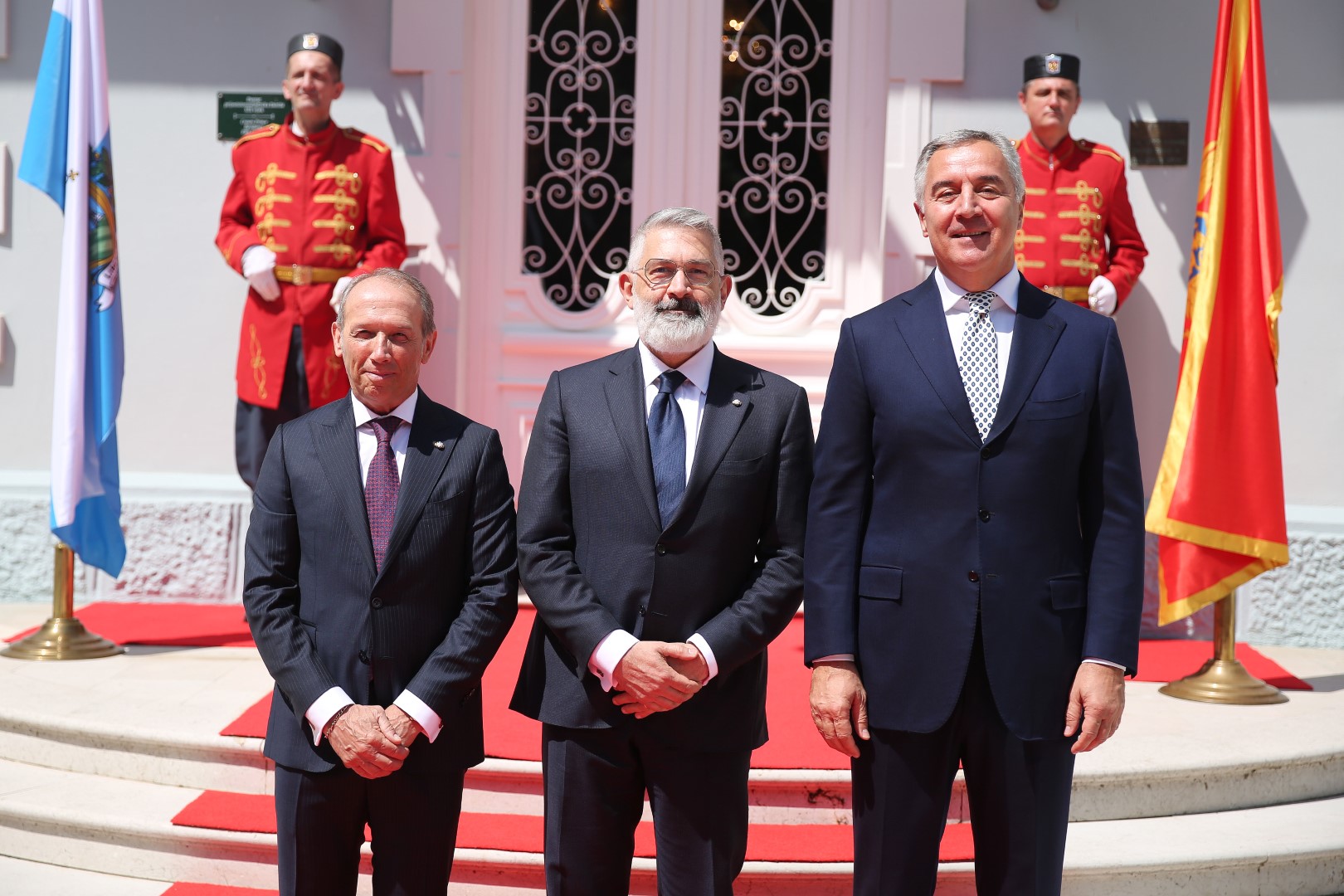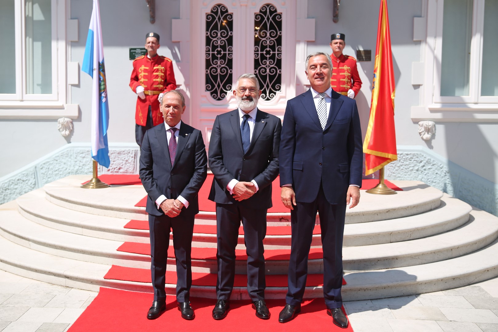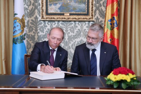 Predsjednik Crne Gore Milo Đukanović dočekao je danas uz najviše državne počasti kapetane regente Republike San Marino Oskara Mina i Paola Rondelija koji borave u zvaničnoj posjeti Crnoj Gori.