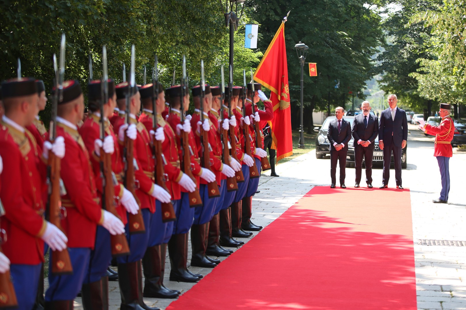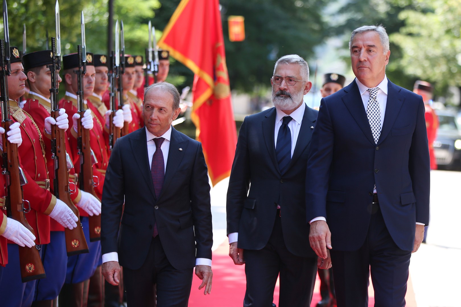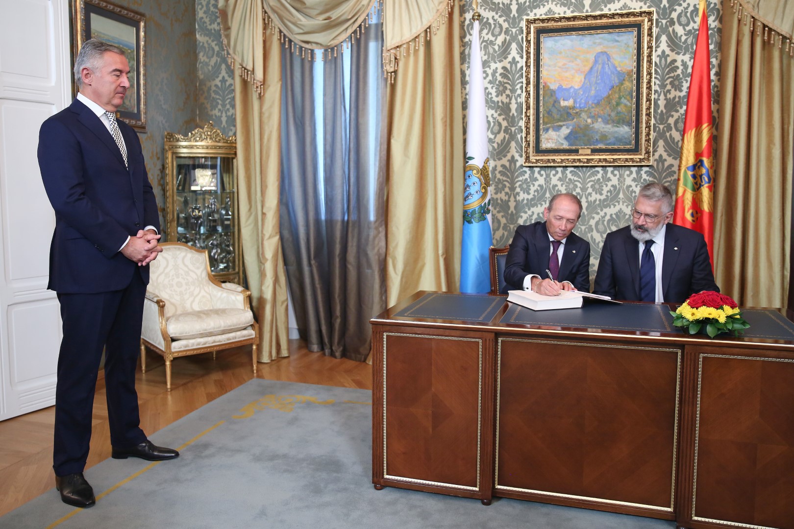Predsjednik Crne Gore Milo Đukanović dočekao je danas uz najviše državne počasti kapetane regente Republike San Marino Oskara Mina i Paola Rondelija koji borave u zvaničnoj posjeti Crnoj Gori.